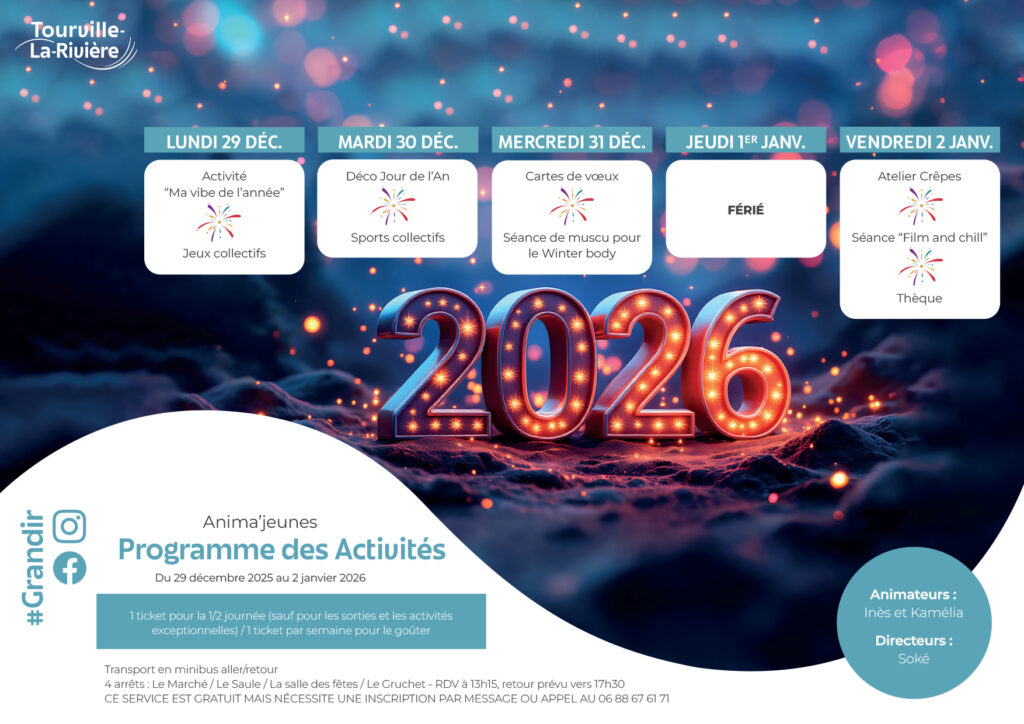 Anima’jeunes et la Ribambelle vous accueillent du 29 décembre 2025 au 2 janvier 2026.  Alors découvrez sans plus tarder ce qui vous attend !